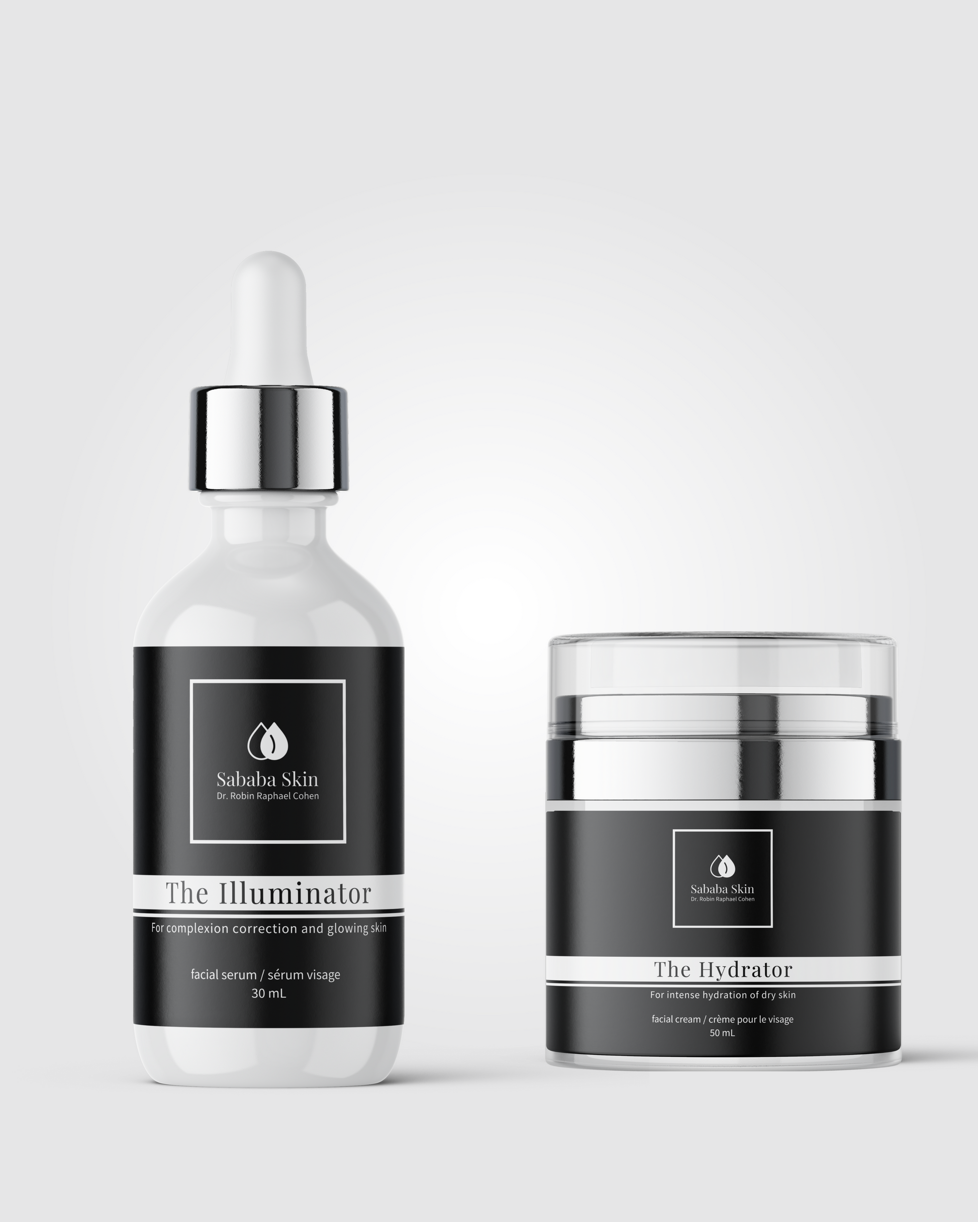 Sababa Skin by Dr. Robin Raphael Cohen is a medical grade skin care brand designed to unlock confidence and enhance beauty. The Morning Set Contains 'The Hydrator' and 'The Illuminator'